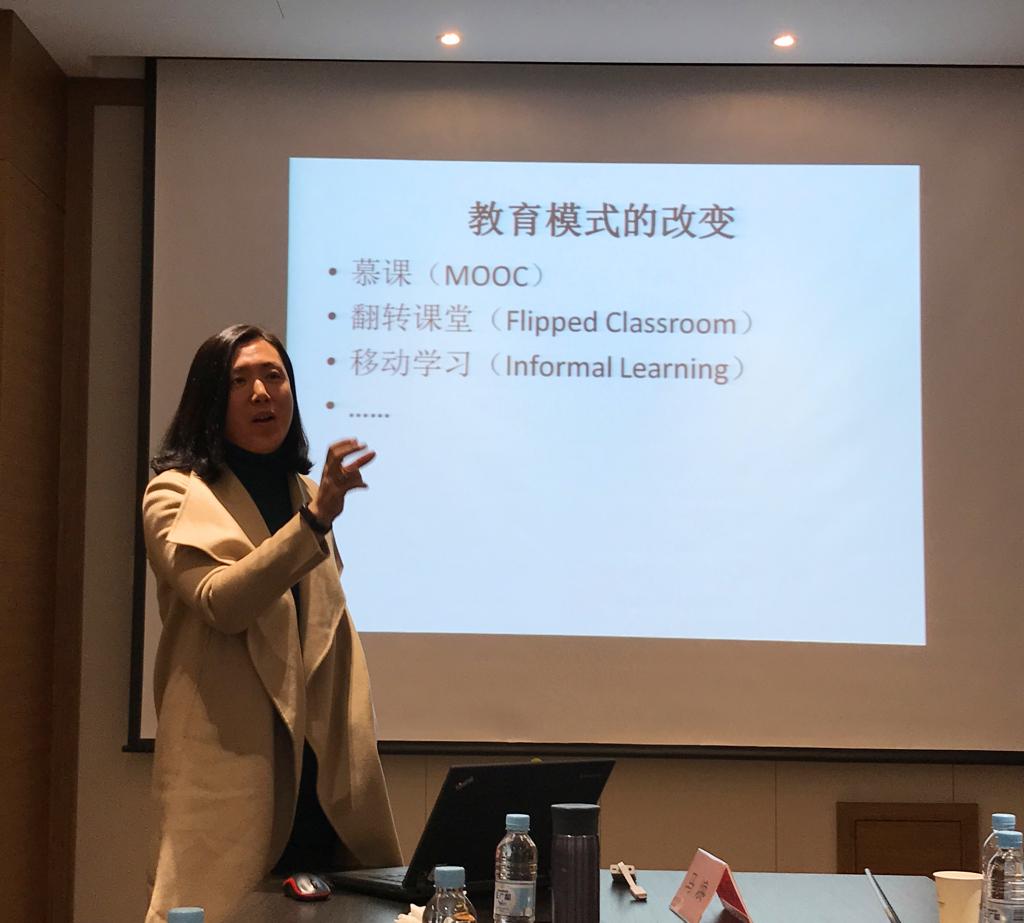 我校思政部马焕老师以《思想道德修养与法律基础》课程为案例,讲述在混合教学实践中,从“翻转课堂”混合式教学1.0的四个环节设计到基于“以创造为核心的逆向思维模型”教育理论的“研创型”混合式教学2.0的新理念产生,以及最后结合课堂教学设计的“问题链”混合式教学2.0模式。课堂教学模式从最初:慕课视频—课堂讲授—小组讨论—课下作业转变成:实际问题出发—资料收集—小组讨论—问题解决方案进,从而促进学生主动学习,培养学生评价、分析、创造的高阶思维能力。