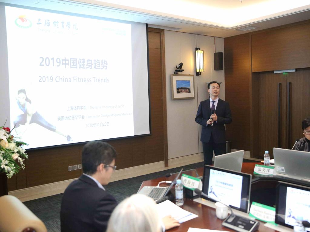 本网讯 11月29日下午,上海体育学院与美国运动医学学会(ACSM)一道向社会发布了《2019中国健身趋势》和《2019全球健身趋势》。出席发布会的有ACSM退任主席Walter Thompson、前主席Barbara Ainsworth和上海体育学院院长陈佩杰,以及20名国内健身行业专家和上海体育学院《中国健身趋势调查》课题组成员。发布会由上海体育学院教授曹振波主持,上海体育学院教授黎涌明代表课题组公布了《2019中国健身趋势》,Walter Thompson代表ACSM公布了《2019全球健身趋势》。
