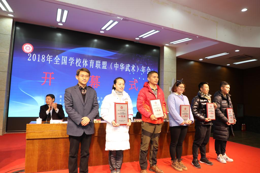 会议伊始,由齐鲁师范学院教务处梁承锋处长颁发优秀教改视频二等奖,天津体育学院竞技体育学校丁保玉校长、广州体育学院武术学院李朝旭院长、山东体育学院武术学院王美娟院长共同颁发优秀教改视频三等奖。