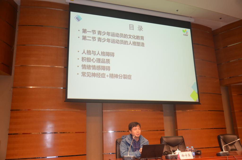 开班仪式结束后,首都体育学院运动心理学副教授徐守森为本次培训班讲授第一课,授课主题为《青少年运动员文化教育与人格塑造》。