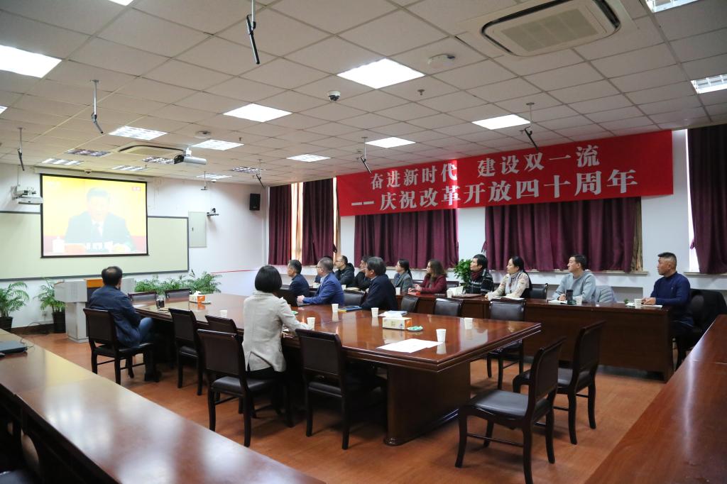 党委中心组成员集中在图文信息楼四楼会议室观看了庆祝改革开放40周年大会。大家一致认为:1978年,以党的十一届三中全会为标志,中国开启了改革开放的伟大征程。如同春雷唤醒大地,我们党带领人民进行的这场“新的伟大革命”,书写了一个国家繁荣发展的壮丽史诗,激荡起一个民族生机勃勃的复兴气象,不仅深刻改变了中国,也深刻影响了世界。