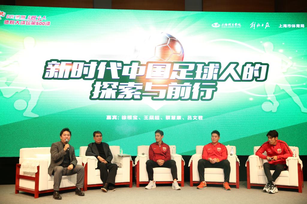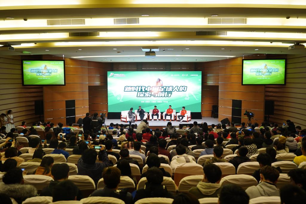 本网讯 12月18日下午2点半,由上海体育学院、解放日报社、上海市体育局主办的纪念改革开放四十周年“体育改革路 体育四十人”主题系列活动之“新时代中国足球人的探索与前行”主题报告会在图文信息楼报告厅举行。中国男足全国青训总监、上海上港集团足球俱乐部总顾问、上海市足球协会顾问徐根宝受邀参加了本次活动。同时来到活动现场参与交流互动的还有上海上港队队员王燊超、蔡慧康、吕文君。党委书记李崟,党委副书记、副院长陈晓峰出席本次活动,与400余名师生共同聆听了本次讲座。本次活动由上海文广集团五星体育主持人刘阳主持。