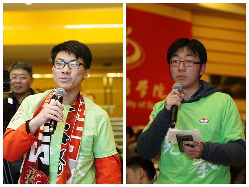 在活动现场,来自各二级学院的二十多名学生担任的青年观察员,并向徐根宝和其弟子进行了提问。