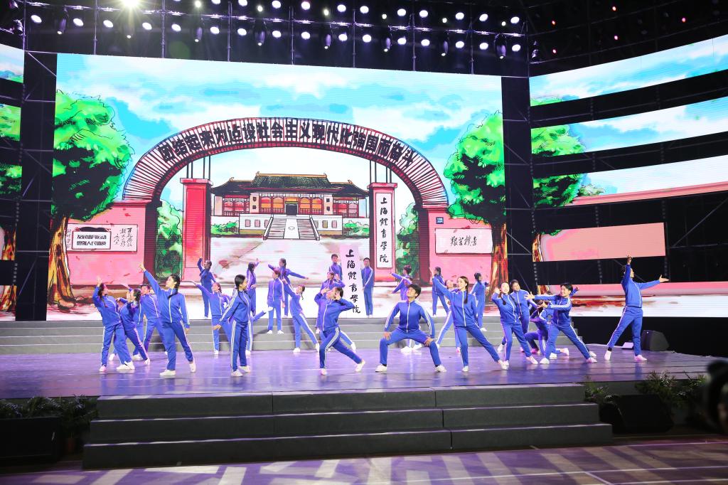 新时代里,我校入选国家首批“双一流”建设高校和上海高水平地方高校建设序列。演出中,武术《荣光同焕》用传统武术项目风采展现了新时代征程开启的荣光,校友仪式环节《新时代·绿瓦人》邀请了众辉体育董事长、姚明前经纪人陆浩,上海市特级校长、体育特级教师徐阿根,全国劳模,五一劳动奖章获得者,全国十大最美乡村教师,海南琼中足球运动管理中心主任、海南省政协委员、海南省足协副主席、海南省校园足球协会副主席、三次世界青少年女子足球锦标赛冠军队总教练肖山,2014年西部志愿者、扎根西藏、现工作于西藏体育局的蔡艳芳等4位校友,讲述了他们的上体故事,彰显了我校教育取得的“荣光”。40年来,我校人才辈出,一代代绿瓦人筑梦时代,为中国体育事业的发展作出贡献。同唱校歌之后,大型歌舞《新的天地》将全场气氛推至高潮,同时也迎来了晚会的尾声。歌舞收场,晚会圆满结束。