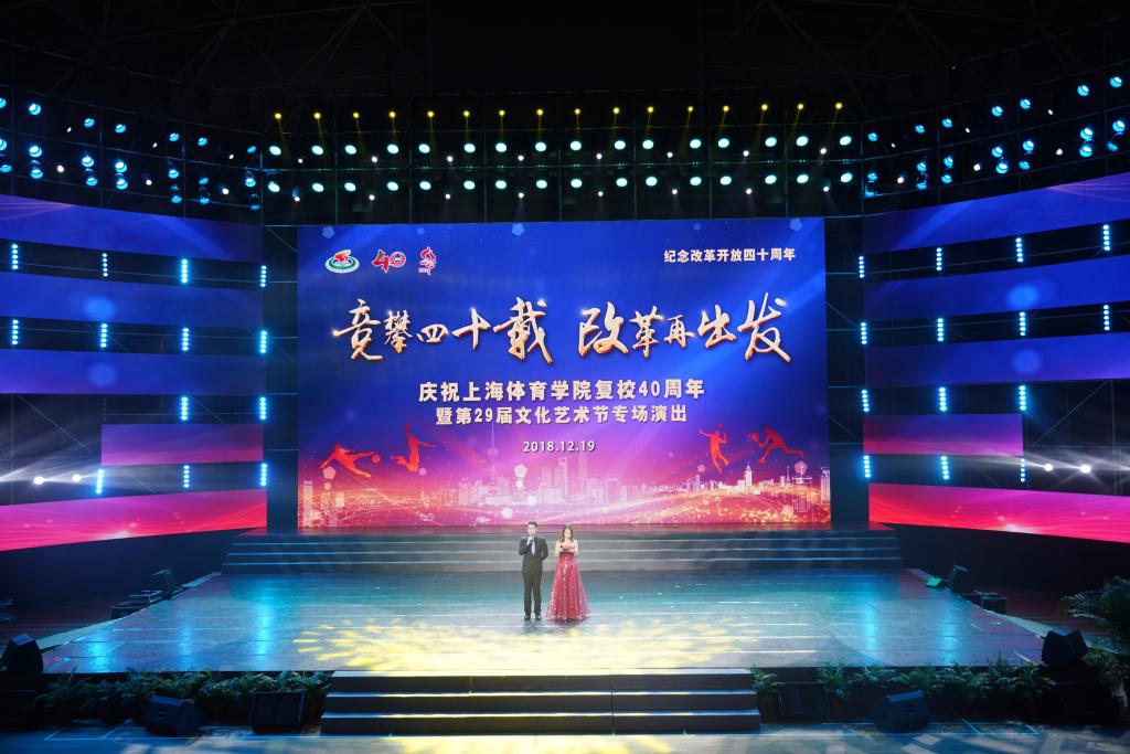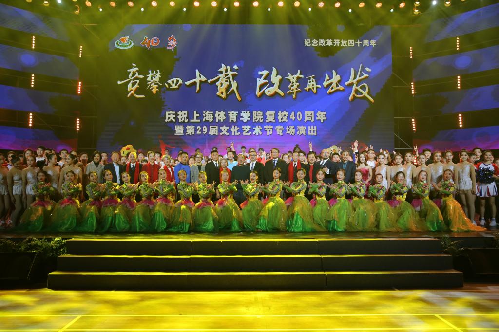 本网讯 1978年正值中国实行改革开放,上海体育学院于清源环路校址挂牌复校。绿瓦人竞攀四十载,与祖国同命运,与时代共步伐,紧跟改革再出发,与中国体育的发展紧密相连。12月19日晚,“竞攀四十载,改革再出发”——庆祝上海体育学院复校四十周年暨第二十九届文化艺术节专场演出在我校综合馆隆重举行。党委书记李崟,党委副书记、院长陈佩杰,党委副书记、副院长陈晓峰,党委副书记、纪委书记詹萌,党委副书记潘勤,党委副书记、院办主任杨玲,副院长毛丽娟,副院长王兴放出席此次活动并观看了演出。