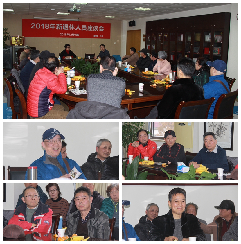二、召开2018年新退休人员座谈会。12月19日下午,由退管会、工会联合举办的“2018年新退休人员座谈会”在工会会议室召开。退管会常务副主任、总支书记李芳主持。她首先祝贺2018年23名新退休人员光荣退休并表示热烈欢迎。工会常务副主席刘宏代表学校感谢退休教职工们对学校各项事业发展的贡献和辛勤工作,并为每一位退休员工送上了慰问品。人事处主管朱成磊老师就有关劳资政策等方面作了详细的解释,并热忱欢迎退休教职工随时咨询。会上,退管会文体协会以及老教协、退教协负责人分别介绍了退休教职工各协会开展活动的情况并热忱欢迎新退休人员加入到老有所乐的队伍中来。新退休的教职工纷纷表达对学校的不舍之情和感谢,会议在热情洋溢的氛围中结束。