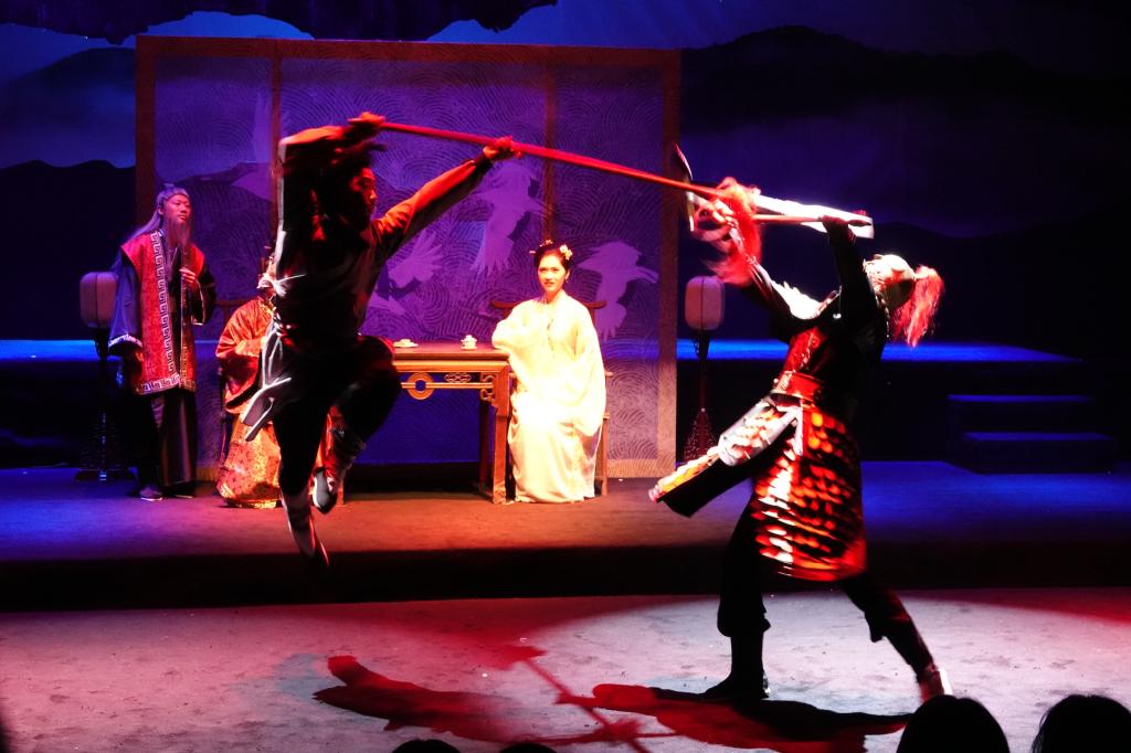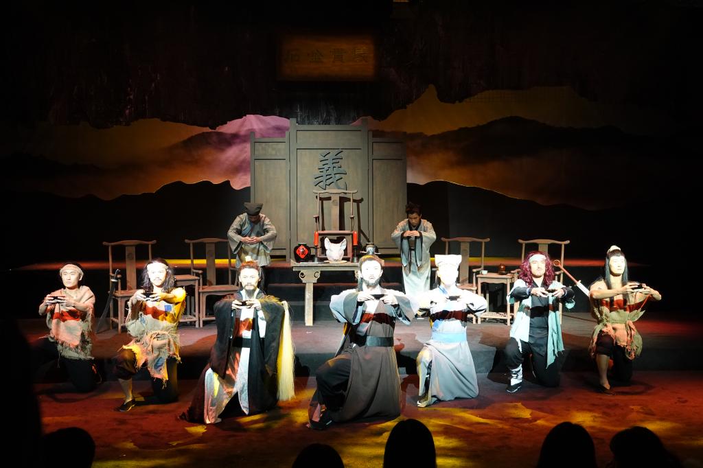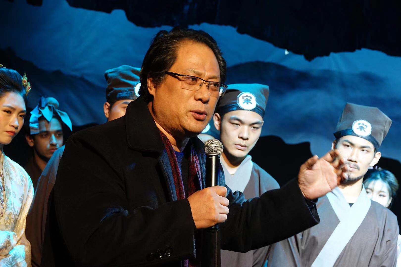 本网讯 12月24日晚,在热烈的掌声与欢呼声中,在鲜花的簇拥下,在欢庆泪水的浸润里,上海体育学院原创舞台剧《水浒新传之生辰纲》首轮演出,在黑匣子实验剧场圆满落下了帷幕。党委副书记潘勤、副院长毛丽娟,武术学院顾问王培锟先生、邱丕相先生,上海体育学院相关职能部分领导、武术学院师生,以及上海戏剧学院、上海音乐学院、上海师范大学、上海大学等兄弟院校,上海话剧中心、开心麻花、安可艺术团等剧团,鸣锣影业、发梦灵影业、优睿传媒等文艺企业,出席了本次首轮四场演出。