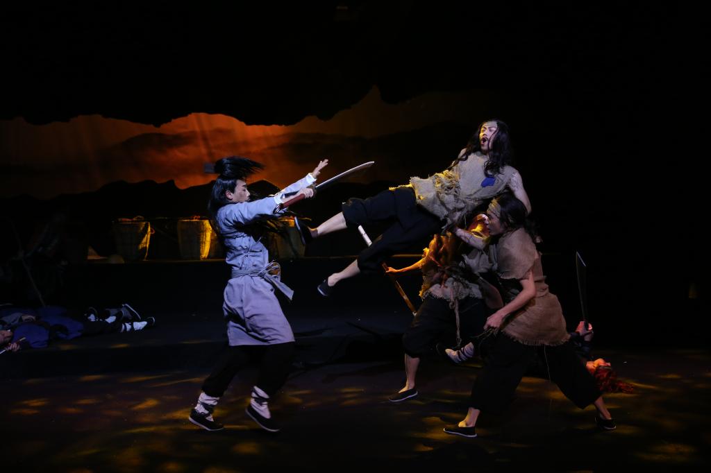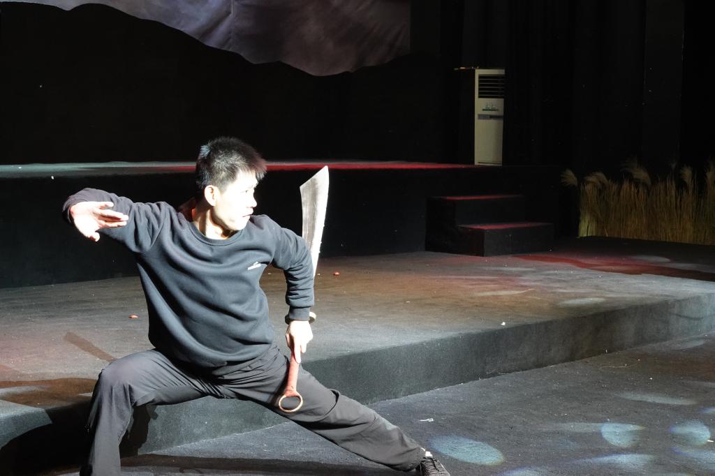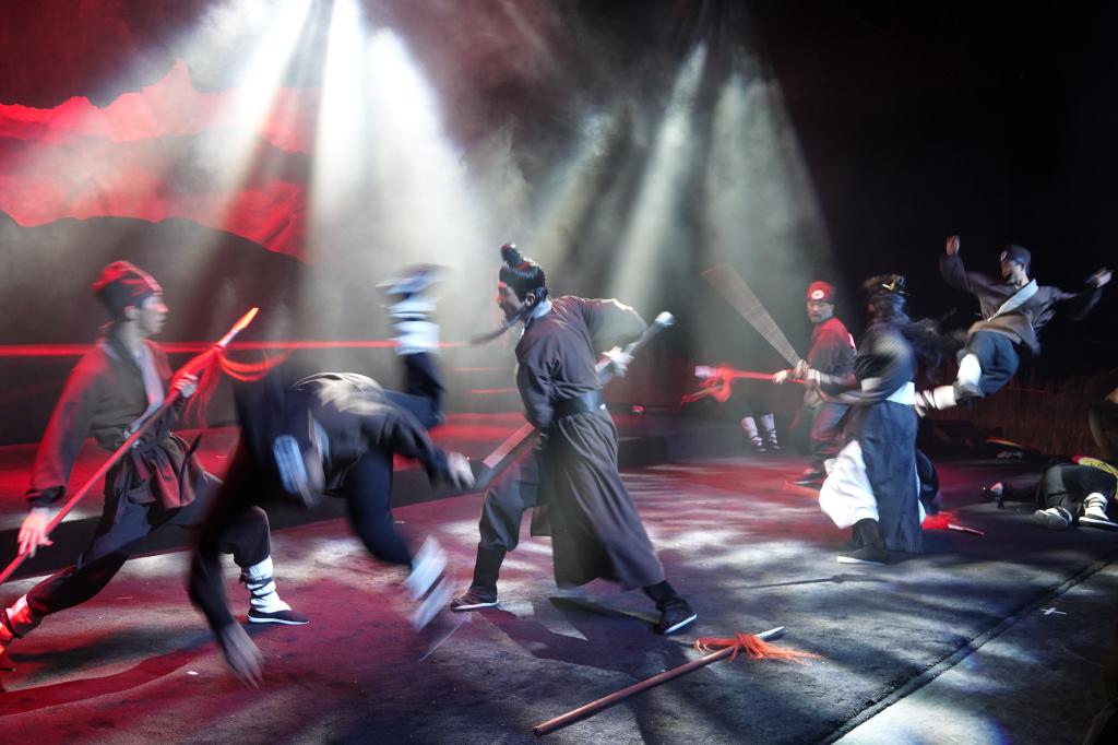 《生辰纲》作为上体武术表演的首部原创大作,自然融入了中华文化绚丽瑰宝——武术。“这次尝试对我来说富有挑战性,因为‘武戏’是本剧关键亮点之一,但也极为复杂甚至是危险。区别于一般的武术对练和武术表演,本剧动作编创需要以剧本为核心,结合角色特质、情境设置,符合时代特征。水浒的故事是发生在宋朝,光是确定兵器样式和武术动作形态就花费了大量的精力和时间。且排练时间零碎、紧迫,演员的压力也十分巨大。”动作导演王继强老师说,“我们希望最终呈现给观众的是生动的,活灵活现的打。希望能做到精彩纷呈、目不暇接,最终能以武术助推戏剧到节奏,真正做到武艺融合”。