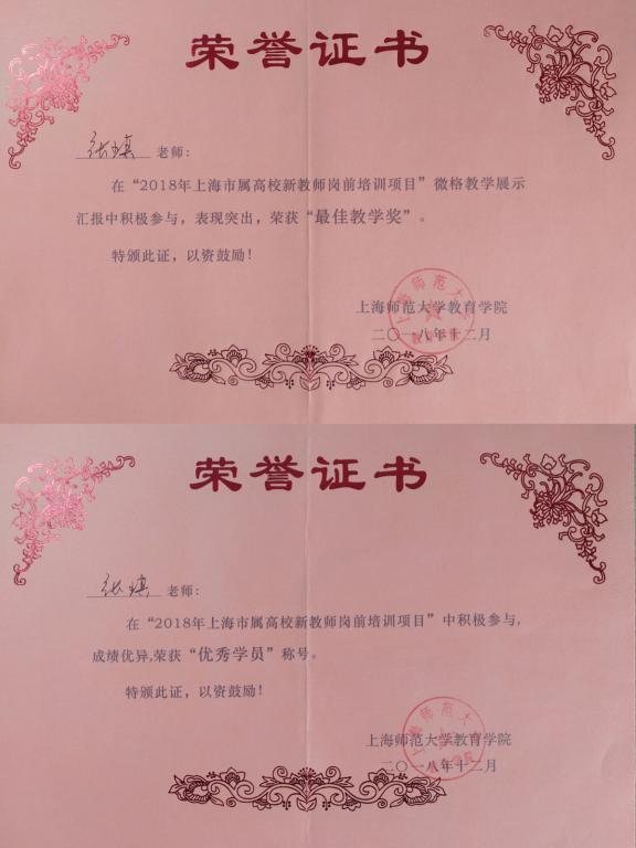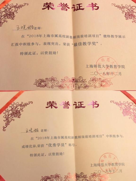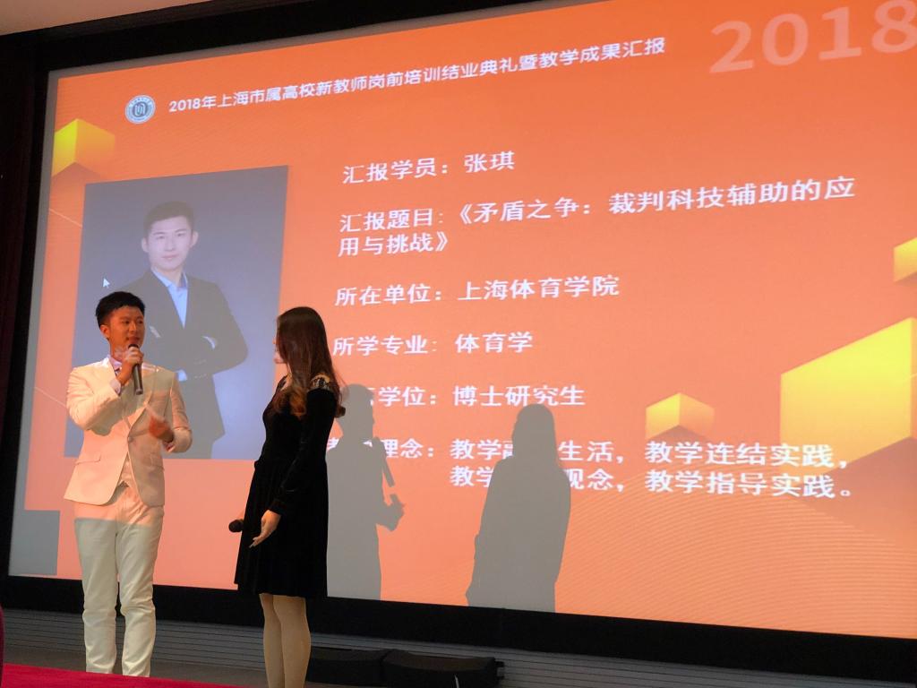 我校新教师在培训期间积极参与、表现出色,得到市教委、上海师资培训中心及承办单位一致好评。体育教育训练学院朱德龙获得“新教师羽毛球男子单打”比赛第一名,原体育休闲与艺术学院张琪、武术学院王晓璐两位教师在微格教学展示中荣获“最佳教学奖”、“优秀学院”称号。