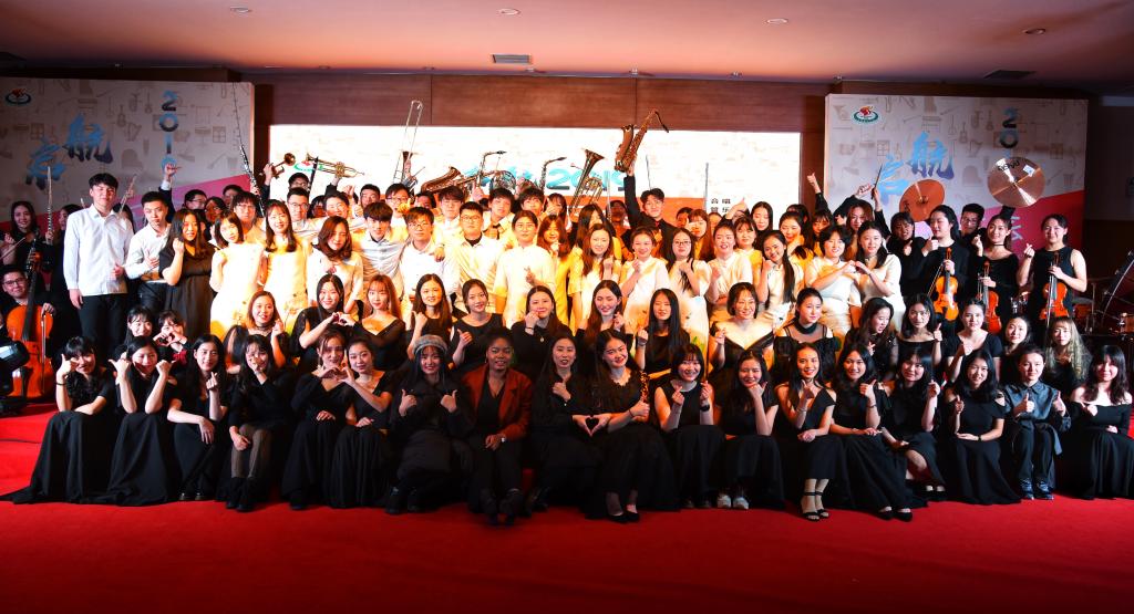 今年是上海体育学院学生乐团成立的第六年。六年的时光里,在学校各领导的关怀支持、指导老师辛勤付出和团员们的共同努力之下,学生乐团下设的合唱团、打击乐团、管乐团、弦乐团、民乐团先后成立,从建团之初的几十人编织到发展至今形成近二百人的温馨大团体,乐团一年年地不断发展,为上体体育与艺术的发展贡献青春力量。学生乐团近年来广泛参与我校各类校园文化活动,广受好评。我校一直以来大力营造“文武并蓄,星光璀璨”的校园文化氛围,培育出了一批富有体育特色、具有艺术才华的团队及个人。展望2019,在新时代、新征程中,上体人将一如既往秉持“身心一统,兼蓄竞攀”的校训,不忘初心、牢记使命,在新的一年以习近平新时代中国特色社会主义思想为指导,以文化人以文育人以体育人,注重思想引领,开展形式多样、健康向上、格调高雅的校园文化活动,在新的一年里为中国体育事业发展作出更大的贡献,在推进“双一流”学科建设和世界一流体育大学建设征程中继续奋进。