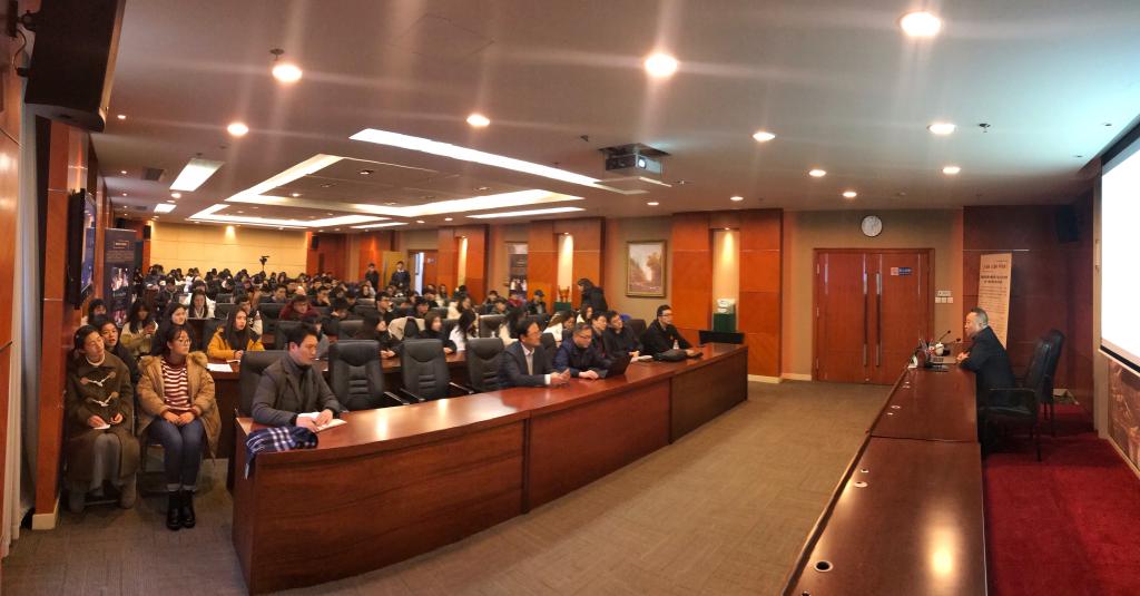 本网讯 2019年1月5日下午,上海市视协主席、上海文化广播影视集团有限公司监事长、国家一级导演、上海体育学院客座教授滕俊杰老师来到我校为上体学子带来了题为《创新·无限可能——从若干影视创作案例说起》的专题讲座。上海体育学院党委书记李崟、上海体育学院原党委书记戴健、传媒与艺术学院负责人、武术表演专业负责人等出席本次活动。