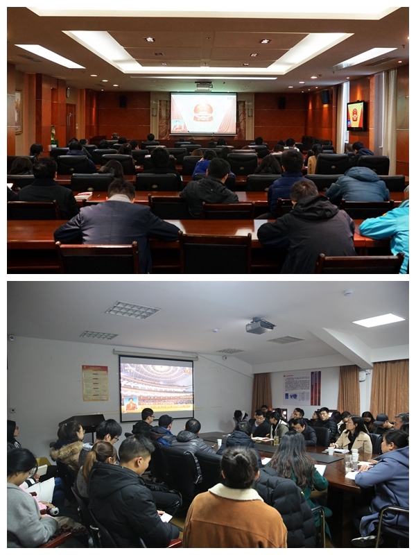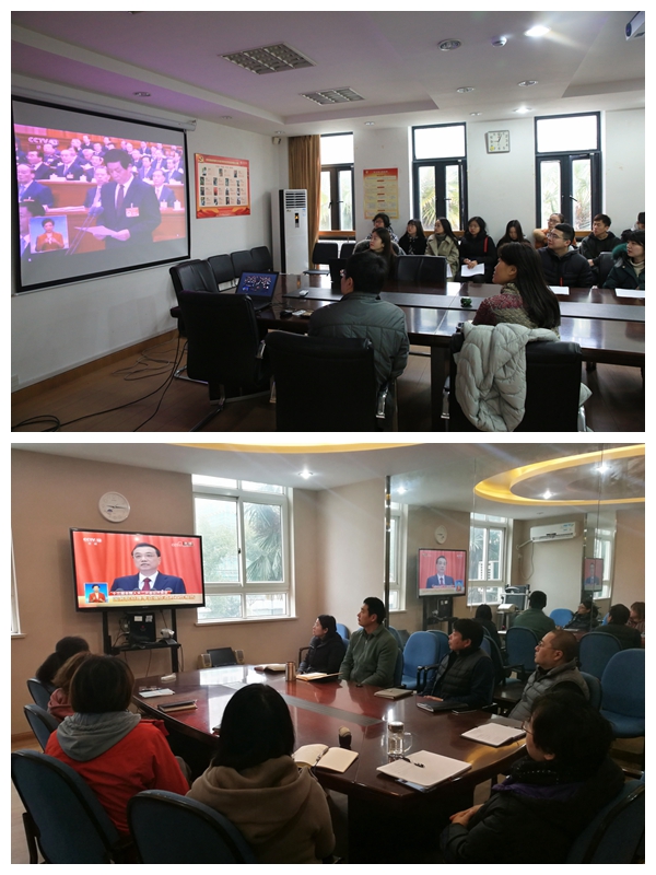 本网讯 十三届全国人大二次会议开幕会今天在人民大会堂举行,习近平等党和国家领导人出席大会。国务院总理李克强代表国务院向十三届全国人大二次会议作政府工作报告。为认真学习贯彻全国两会精神,按照学校党委的统一部署要求,3月5日上午9点我校党委中心组及二级单位在各会场集中收看了十三届全国人大二次会议开幕会直播,听报告,谈感受。