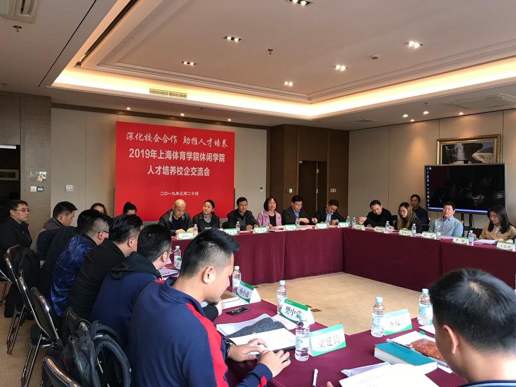 上海市跳绳协会、上海市登山户外运动协会、上海旱地冰球协会、圣巴(上海)文化传播有限公司、上海尚体体育发展有限公司、上海巅峰体育管理股份有限公司等20余家行业协会、企业单位负责人参加会议。休闲学院院长王红英、党总支书记霍圣录、休闲学院副院长刘树军、各专业团队负责人、教师代表参加交流会。会议由党总支副书记王丽娜主持。