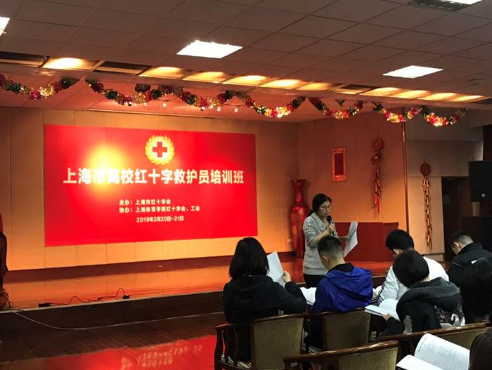 本网讯 3月20日-21日,上海市高校红十字救护员培训班在校工会多功能厅举行。此次活动由上海市红十字会主办,上海体育学院红十字会与上海体育学院工会共同承办,目的是培养优秀的红十字救护员,传授急救知识,宣杨救死扶伤的信条。我校40余名师生参加了本次培训。
