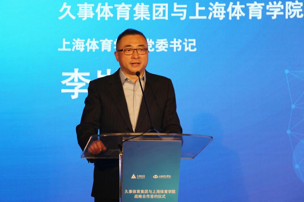 上海体育学院党委书记李崟在致辞中指出,学校与久事体育强强联手,共同构建体育人才培养、智力集聚和协同创新的示范性高地,是学校贯彻全国和上海教育工作大会精神的重要举措,在积极推进“产学研”一体化的同时,学校还将积极探索实践育人新途径,把育人大文章和科研大项目做在生机勃勃的体育产业第一线,把“厚植红色基因、拓展全球视野、培养创新思维”的人才培养要求,贯穿于有温度、有激情的社会实践“金课”和创新创业育人等项目中,不断提升上体人才培养的社会影响力和美誉度。李崟书记表示,期待社会和业界共同参与,在体育产业发展的新蓝海上携手扬帆起航,推动上海建设全球著名体育城市和国际体育赛事之都。