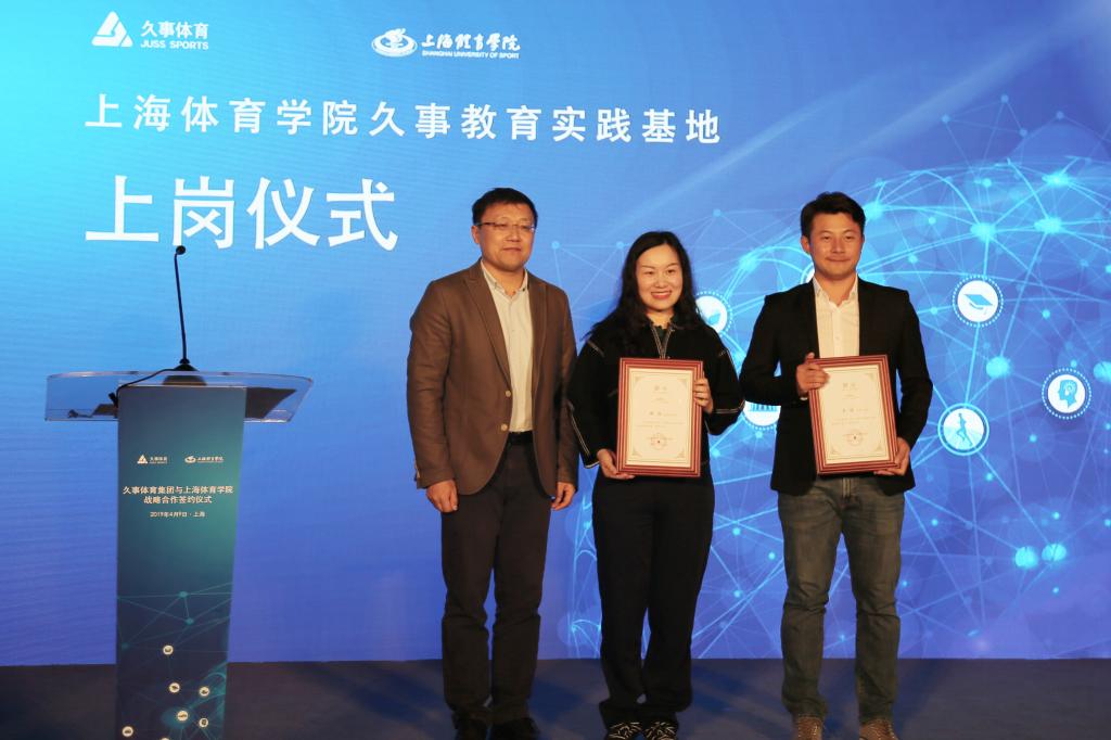 上海体育学院党委副书记、副院长陈晓峰和上海久事体育产业发展(集团)有限公司总经理姚冷在与会嘉宾的共同见证下签署了战略合作协议。双方将依托“双一流”和高水平地方高校建设的学科优势和科研成果,创新校企合作机制,打造国内领先的体育“产学研”一体化上海模式,推动体育高等教育与产业一线的深度融合,推动体育专业智库与产业前沿的有机结合,推动体育高水平人才培养通道的有效贯通,以一流教育助力上海早日建成“全球著名体育城市”。党委副书记、副院长陈晓峰为久事体育杨亦斌、谷际庆、王舒炜颁发了体育产业人才培养导师聘书。