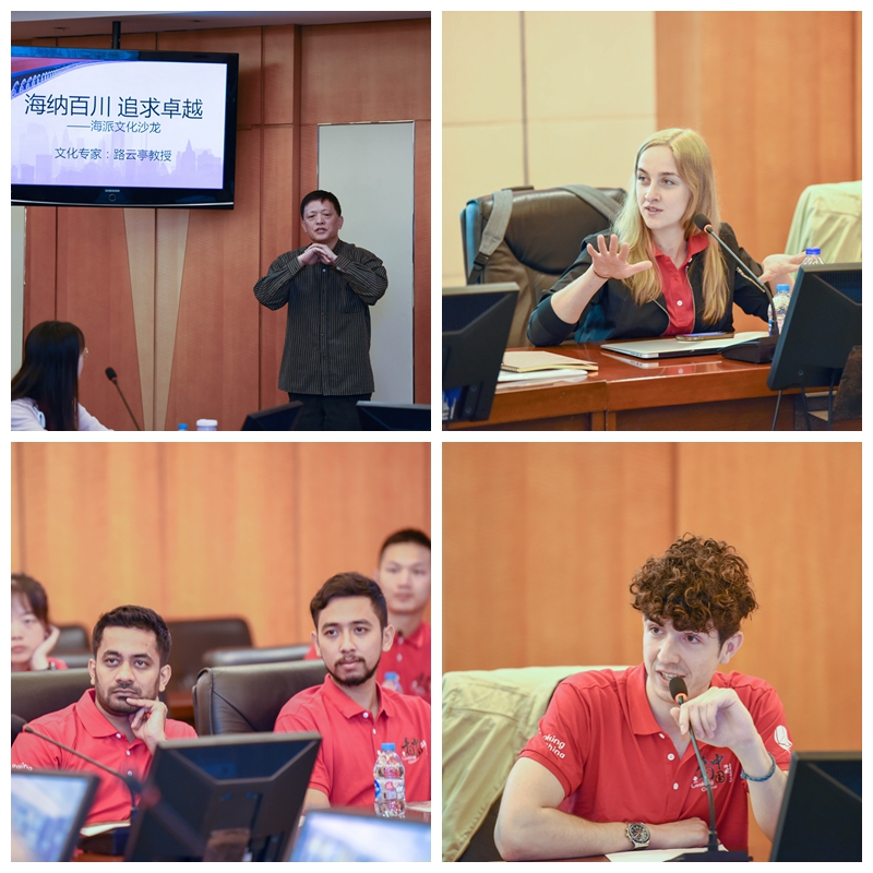 启动仪式上,程华和罗军为外国青年学生授旗,宣告“看中国”上海行的隆重登场。而后,传媒与艺术学院知名教授、文化学者路云亭主持了文化沙龙,将10组拍摄选题置身上海百年发展史背景下进行了剖析。无论是海派建筑、海派艺术还是传统武术、现代书法,路云亭教授的史料引用随手拈来,观点令人耳目一新,彰显了我校教师严谨笃实、悉心治学的学者风范,给中外方师生留下了深刻印象。
