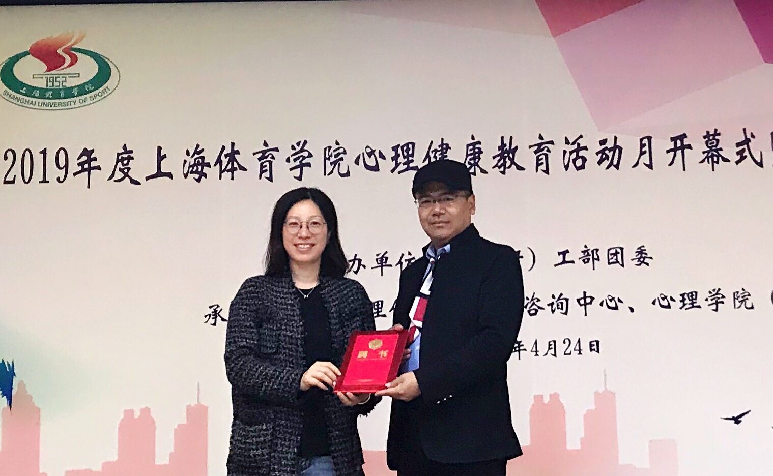 接下来,梅朵为学(研)工部特聘心理专家贺岭峰教授颁发聘任证书,并宣布心理健康教育活动月正式开幕。本次心理健康教育活动月的主题为“我的国·我的家·我的绿瓦情缘”,鼓励同学们围绕自我成长和家庭成长经历,围绕在上海体育学院的学习生活和心路历程,聚焦抗逆成长、阳光健康心态,一起讲述心灵成长的感悟和体会,展现心理健康正能量,营造良好的校园心理氛围,向建国70周年献礼。