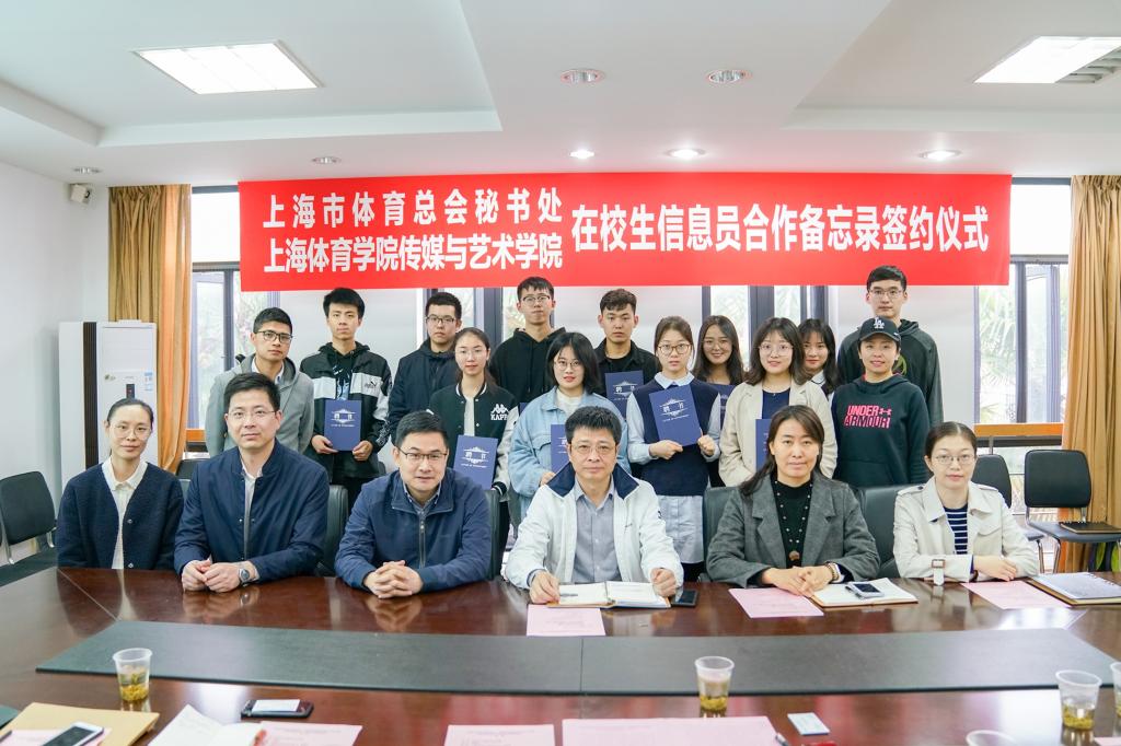 本网讯 4月28日上午,上海市体育总会秘书处与我校传媒与艺术学院签署合作备忘录。双方将以信息员队伍建设为起点,积极推动赛事传播、人才培养、文化研究等领域的合作交流,助力上海全球知名体育城市建设。上海市体育总会秘书处主任、上海市体育竞赛管理中心主任杨国浩,上海市体育总会秘书处副主任周炳华,传媒与艺术学院院长杜友君,党总支书记高艳丽、副书记陈怡等出席了签约仪式。