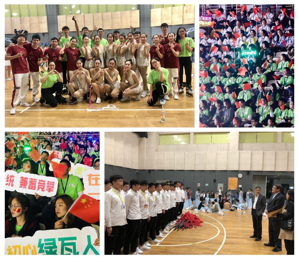 学校在接到参演邀请后,在体育教育训练学院、休闲学院以及经济管理学院等相关学院的大力配合下,各项目每天利用课余时间,争取每一个细节做到精益求精,以更饱满的状态投入到排练中去,以最标准的动作,在五四一百周年歌会中展现当代青年学生良好的精神面貌。韩耀刚、陆颖娜、樊思聪、刘洋等老师积极参与带队指导,参演学生圆满完成了27-28日两天彩排以及当晚的表演任务。歌会当晚,校领导还看望参演学生,对他们的辛苦排练给予充分肯定,鼓励大家振奋精神,为校争光,展现绿瓦青年风采。