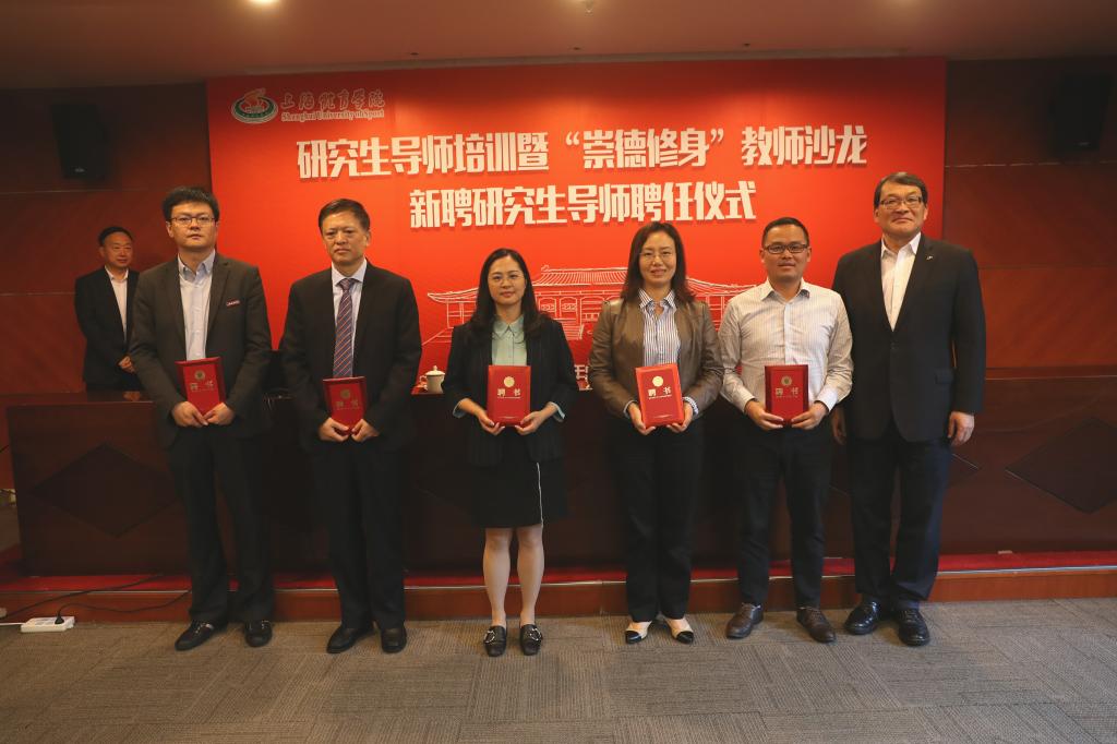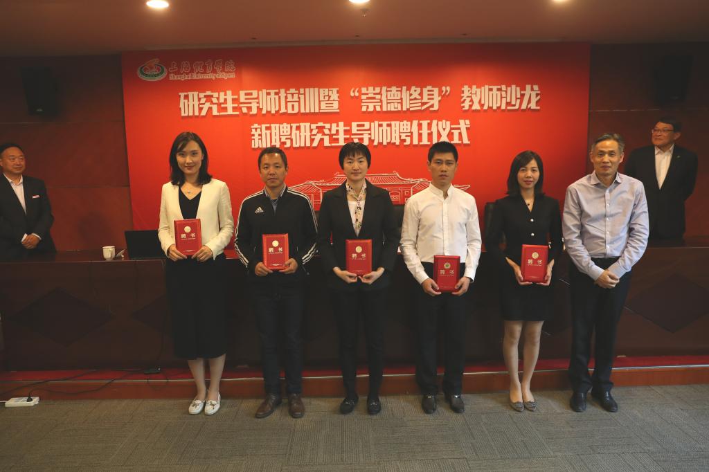 为加强仪式教育,本次活动上特别举行了新聘研究生导师聘任仪式,研究生处为每一位新聘任的研究生导师分发了聘任证书。院长陈佩杰、副书记副院长陈晓峰分别为新聘博士生导师、硕士生导师代表颁发聘任证书。