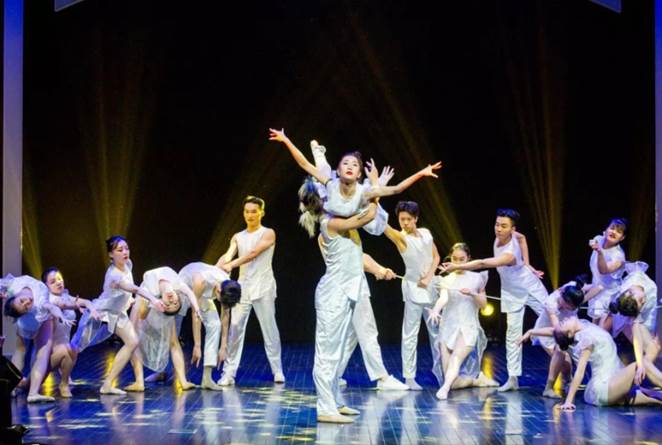 此次展演分为四个篇章,分别是传承、青春、创新和希望。共包含三个舞蹈类作品、五个戏剧类作品。其中我校选送的参赛作品双人舞《夜莺与玫瑰》与群舞作品《续写》受邀参与展演,现场观众热烈反响。双人舞《夜莺与玫瑰》取材于英国唯美主义作家王尔德的童话故事,以一只夜莺受到大学生的爱情而感动,培育玫瑰为主线。运用拉丁舞的动作语汇进行创作,探索拉丁舞舞台艺术创作的审美观。作品赞扬了爱情的可贵,鞭挞了世间的拜金主义。群舞《续写》超现实主义的抽象化演出,将花样跳绳与舞蹈完美结合在一起,与观众们产生电流;舞蹈以手机为切入点,运用绳、编织网等道具,通过舞蹈、艺术体操、和花样跳绳等形式,将体育与艺术巧妙结合,讲述了在网络时代下人与网络及电子产品之间的关系,发人深省。
