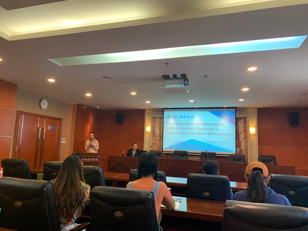 Damon Andrew教授首先介绍了佛罗里达州立大学在体育学科方面的教学、科研现状。并指出,此次访问是他就任该校教育学院院长后第一次出国访问,他将上海体育学院视为最重要的国际合作伙伴之一。此前上海体育学院所输送至该校的访问学者和短期访学研究生给他和其他同事留下了深刻印象,充分展示了上体严谨的科研作风和素养。希望今后能扩大合作领域,在“3+1+1”合作办学、科学研究、人员互访等方面能够取得新的进展。