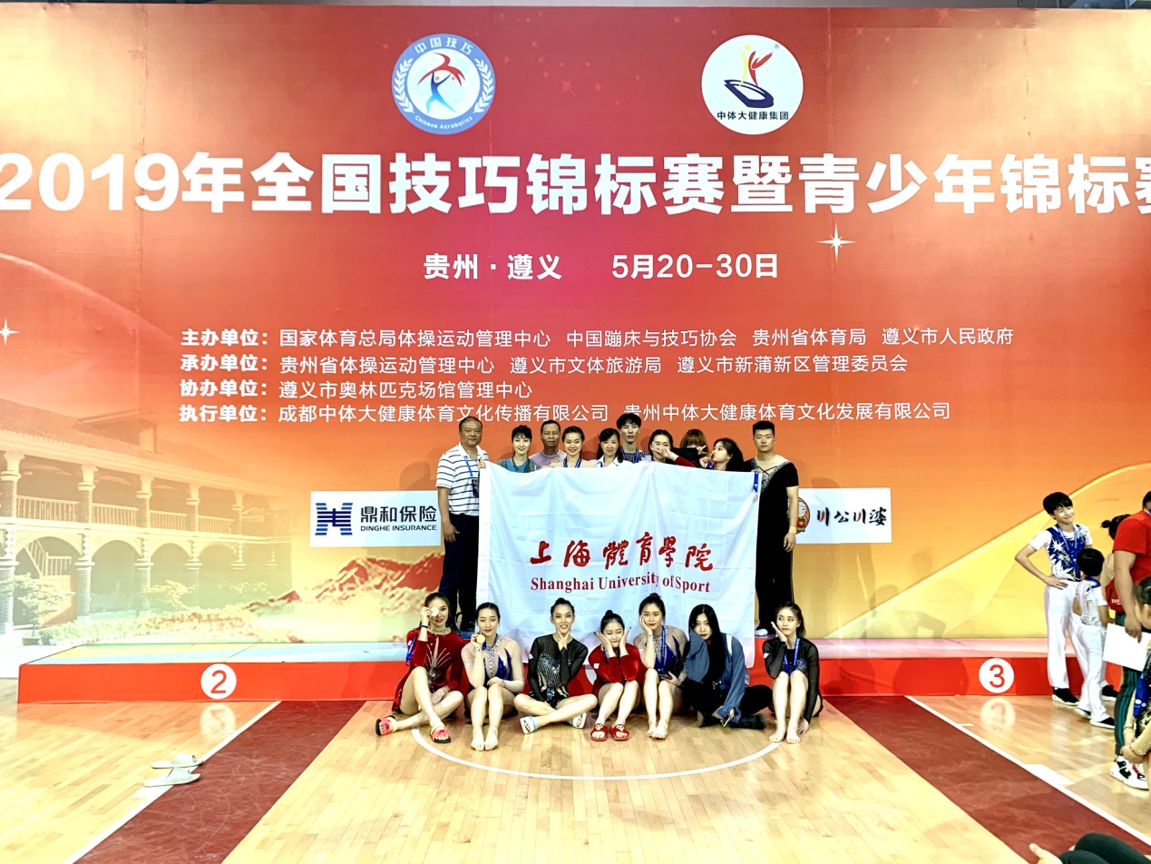本网讯 5月20至30日,2019全国技巧锦标赛暨青少年锦标赛,在贵州省遵义市奥体中心体育馆隆重举行。经过激烈的比拼,我校技巧队取得5金、1铜的优异成绩。院技巧队在训竞处、体训学院领导的关心支持下,在教练员和运动员的共同努力下,运动员们傲然绽放于赛场,充分展示了上体人的实力和精神风貌,为我校争得了荣誉。