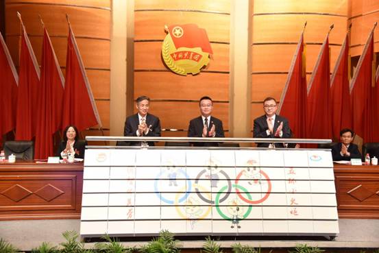 会上,志愿者吉祥物“小火炬升级版”新形象正式揭幕,在2014年的第十五次团代会上小火炬诞生,今天,结合习近平总书记培养德智体美劳全面发展的建设者和接班人的要求,结合体育特色与上体特点,小火炬升级版正式发布,五个小火炬各有奥运五环颜色,象征德智体美劳的寓意。