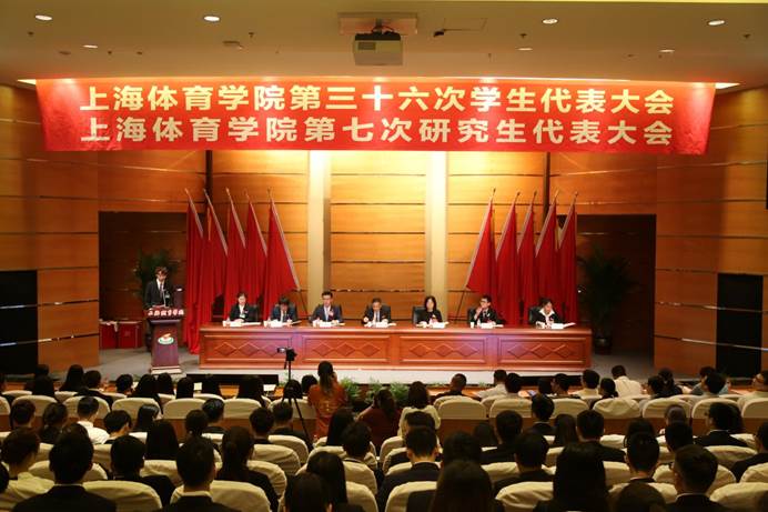 本网讯 2019年6月2日,上海体育学院第三十六次学生代表大会、第七次研究生代表大会在图文信息楼报告厅隆重召开。