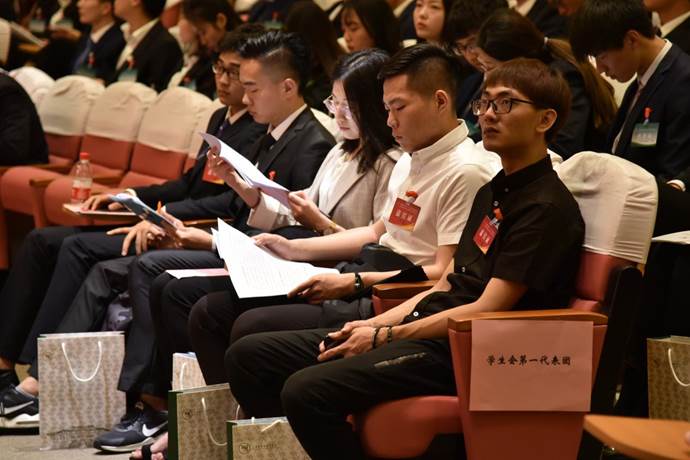 在各代表团会议室,代表们以高度的主人翁精神和高涨的热情,紧扣大会的主题,对大会文件进行认真研读、积极思考,凝心聚力、激扬青春、团结竞攀、创新发展,为建设世界一流体育大学贡献青春力量。