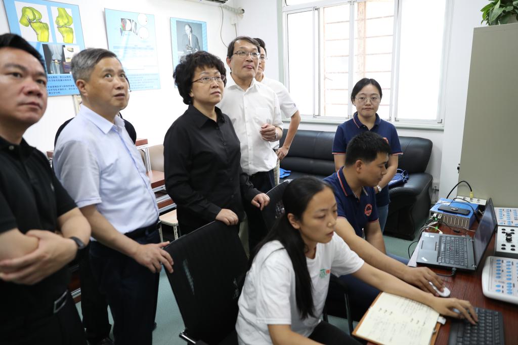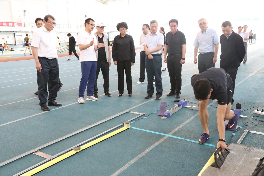 翁铁慧副部长一行参观了乒乓球智能机器人,慰问了在我校驻训的巴布亚新几内亚国家队队员,察看了中国乒乓球学院青少班训练情况。实地了解中国冬奥钢架雪车国家队驻训情况并参观了体能训练研究中心。随后,参观了我校研发的数字诊疗系统,详细了解国家兴奋剂检测上海实验室建设情况。