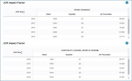 本网讯 6月20日晚,科睿唯安(Clarivate Analytics,原汤森路透)公布了最新《期刊引证报告》(Journal Citation Report, JCR),上海体育学院主办的Journalof Sport and Health Science(JSHS)(中文刊名《运动与健康科学(英文)》)影响因子大幅提升至3.644(去年为2.591),在83种被SCI收录的体育类期刊中排名第10,较去年上升11名(2018年排名第21),进入Q1;在52种被SSCI收录的运动、休闲、旅游类期刊中排名第8(2018年排名第14),进入Q1。首次进入JCR“双学科库”世界前十。