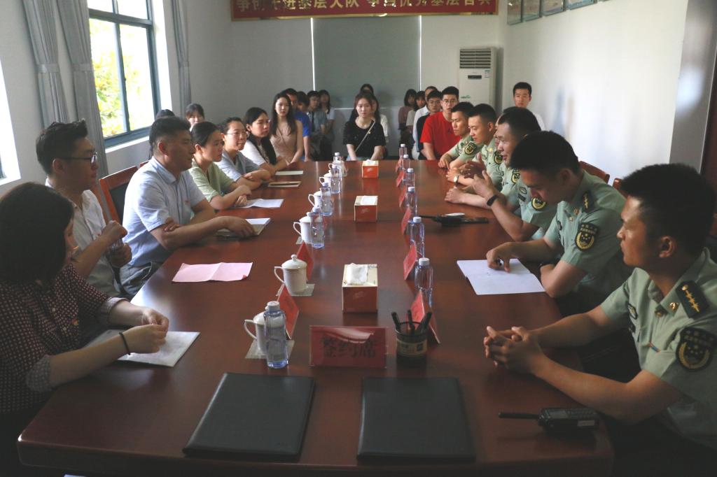本网讯 为深入学习贯彻习近平新时代中国特色社会主义思想,树立“使命在肩、奋斗有我”的使命精神,推进“两学一做”制度化常态化,在迎接中国共产党成立98周年之际,6月28日上午,经济管理学院党总支赴武警上海总队机动第一支队二大队驻地开展党建联建主题活动。本次活动旨在通过与武警部队建立党建合作,进一步拓展基层党建和党员教育资源,并通过对学生党员开展国防教育,学习新时代强军精神和人民军队的优良作风,增强新时代大学生的责任感和使命感。经济管理学院党总支书记游林生,武警二大队教导员、大队长、各中队指导员,以及我院学生党支部书记、辅导员和本科生党支部全体党员、研究生党支部新发展党员共同参加本次活动。