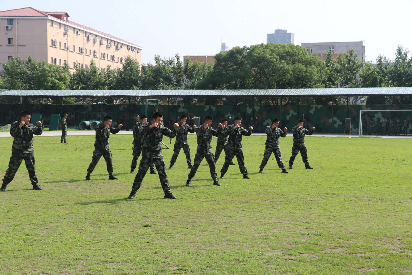 师生党员在军事训练场上观摩了武警战士进行的刺杀、格斗等训练科目;在官兵宿舍楼参观了战士们整齐的内务设置;在荣誉室参观学习了七中队的光荣历史和战斗英雄们的英勇事迹;在会议室观看了武警上海总队机动第一支队的革命历史和强军建设纪录片。师生被战士们精湛的军事技能、昂扬的军容军貌深深感染,也备受鼓舞,纷纷表示“被战士们坚定的理想信念所感动,所谓岁月静好,是有人在替我们负重前行。每当我们沉浸在节日喜庆中,武警官兵坚守在辛勤的工作岗位上,正是有了他们,城市才能如此安定,生活才能如此康宁。”
