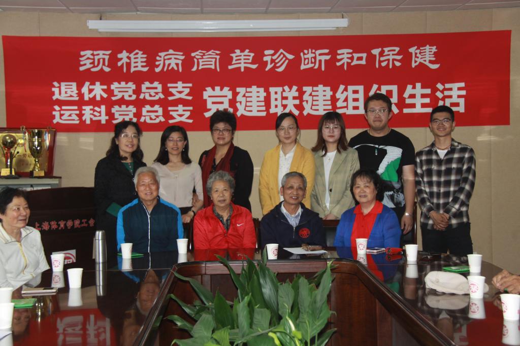 积极投身社区服务的同时,运科学院党总支同时还长期与我校退休党总支党建联建组织生活。以“颈椎病简单诊断和保健”为主题,运动科学学院运动康复系教师王淼就颈椎病的发病原因、就诊及用药等为退休老教师们提供了切实的建议和科普,研究生第二党支部党员蒋超以弹力带、八段锦等为例,针对颈椎病的发病特征,为老干部们提供一套集安全和有效为一体的动作训练方法,充分发挥运动科学学院的专业所长,以实际行动深化和拓展支部实践活动成果,实现了党支部的相互促进,共同提高。