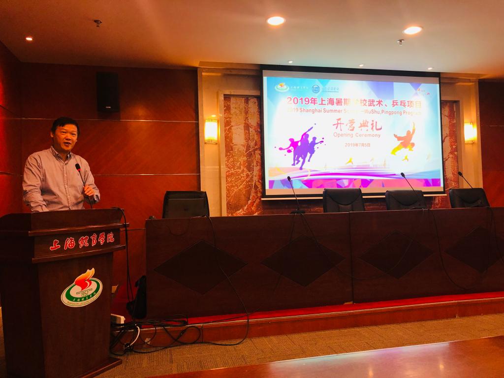 本网讯 7月5日上午,由我校国际教育学院承办的“2019年上海暑期学校—武术、乒乓项目开营典礼”在图文信息楼第二会议室举行。国际教育学院党总支书记刘东锋、国际教育学院院长吴贻刚、副院长朱东,中国乒乓球学院副院长李汶凯出席开幕仪式。项目负责人张森、徐文婷,中乒院、武术学院教师和本期学员参加仪式,国际教育学院学生崔玮伊主持开幕仪式。
