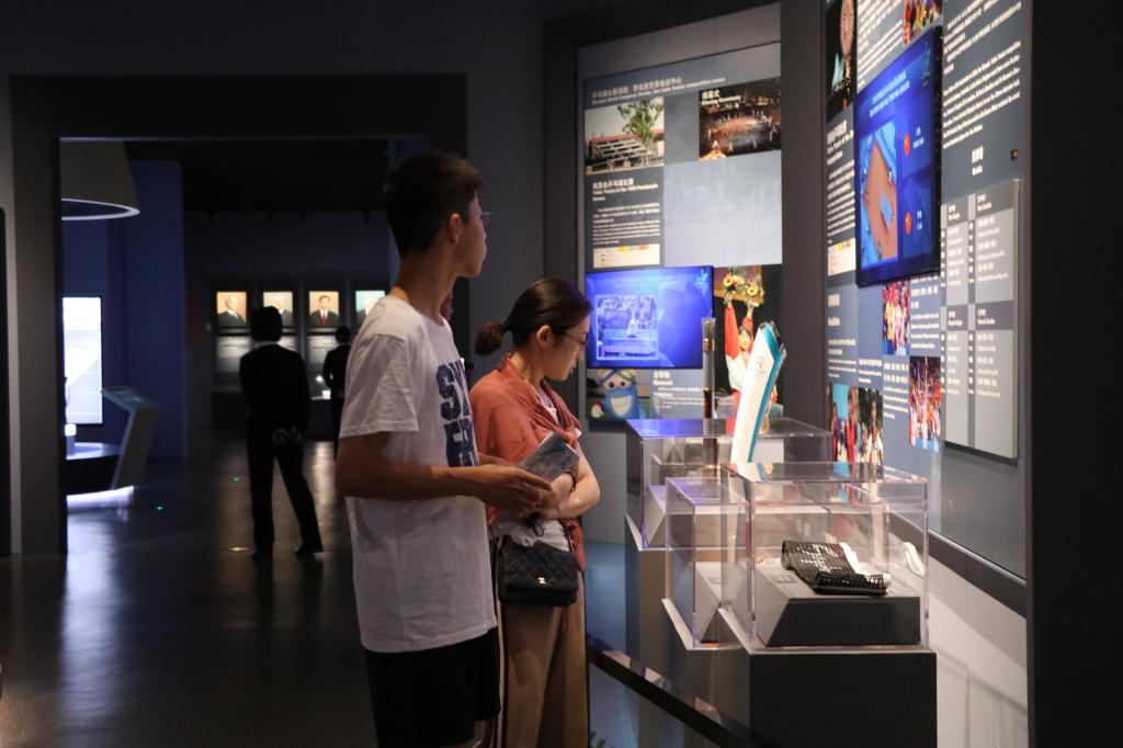 傍晚5点至夜晚9点半,不少市民来到乒博馆体验夜游博物馆的乐趣,其中不乏平日无法在白天参观的上班族和带着刚放暑假的小朋友的家长们。