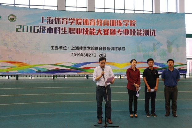 本网讯 根据上海体育学院本科生培养方案的要求,为提高体育教育和运动训练专业学生的职业能力,促进学生主动学习专业技能,帮助学生胜任未来的目标职业,6月27日至28日,体育教育训练学院举办了“2016级本科生职业技能大赛暨专业技能测试”。上海体育学院党委副书记杨玲,体育教育训练学院党总支书记徐烈,副院长蔡玉军,党总支副书记、副院长曹智超出席了活动。开幕式由徐烈主持。