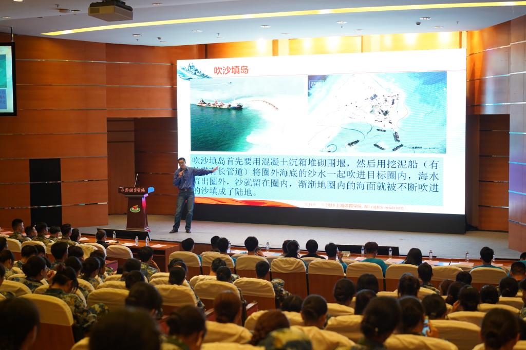活动中,马克思主义学院教师张晓龙以《关注海洋国情 创新国防观念》为题与同学们分享了一堂别开生面的“国防微课”;退伍学生代表徐穗、张小乐、教师代表樊思聪分别与同学们分享了他们在酒泉卫星发射基地、95645部队、驻港部队三军仪仗队的故事;而本次军训团三营长刘涛涛则从扫雷英雄杜富国的故事讲起,与大家分享了他作为一名军人的自豪与对同学们本次军训的期待。