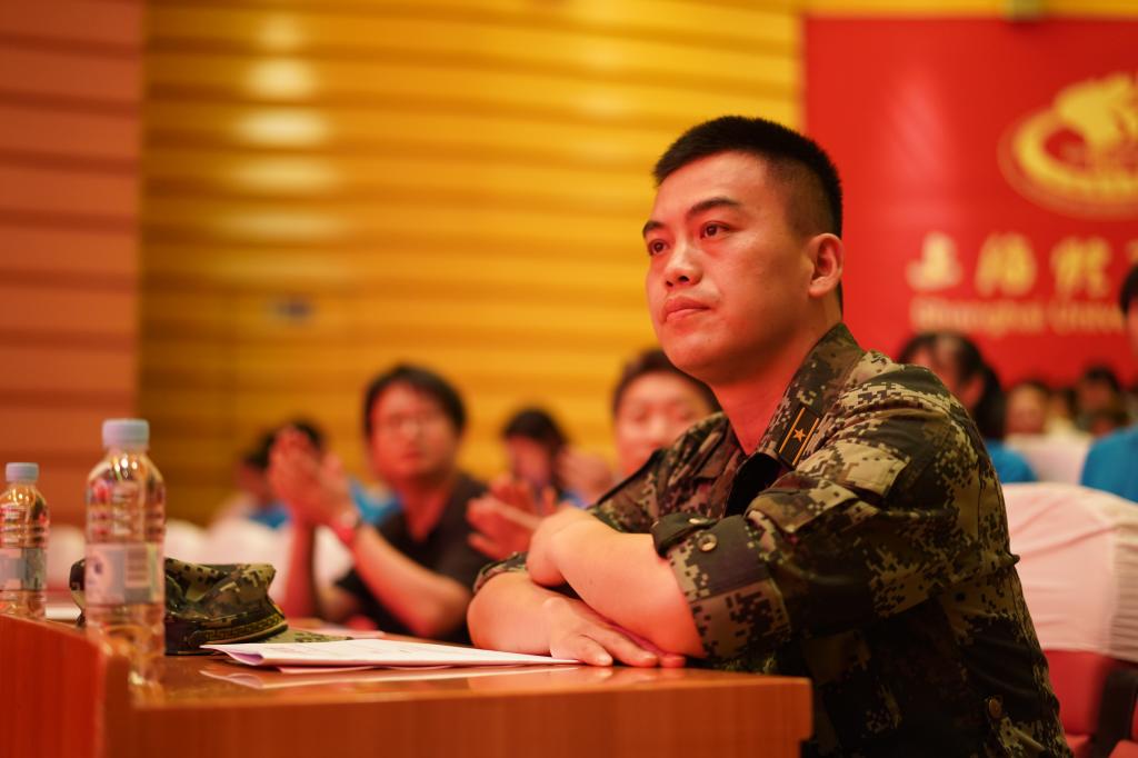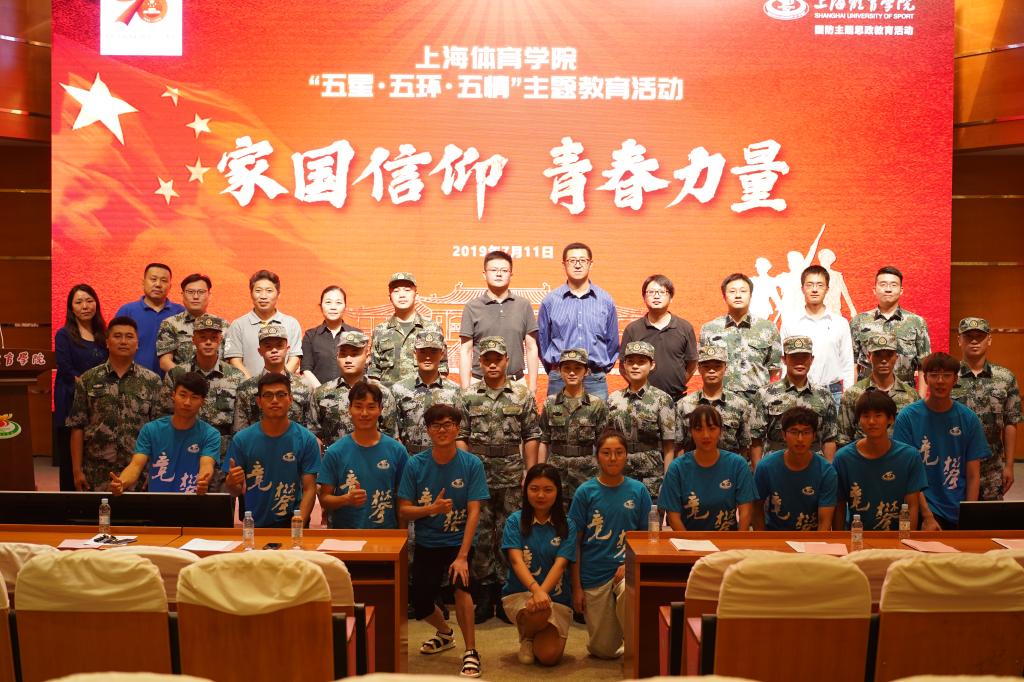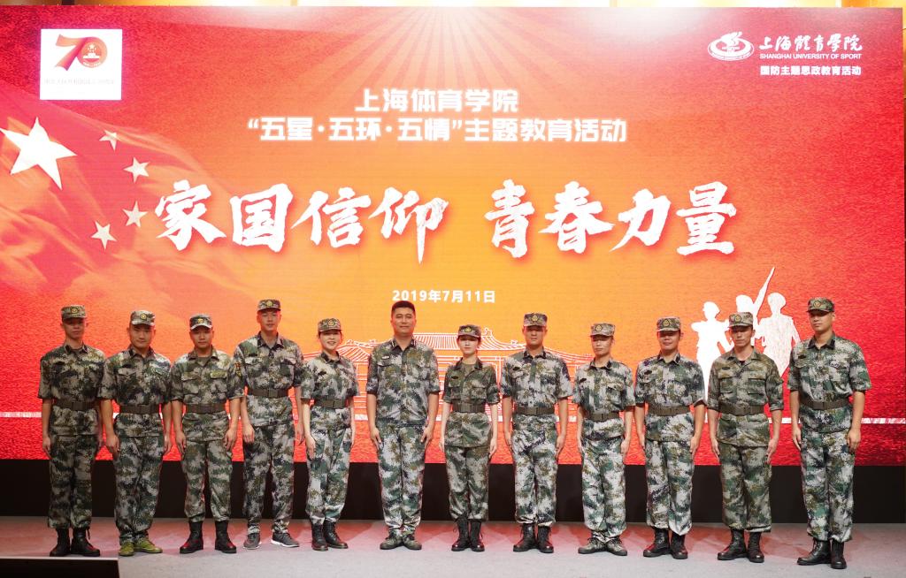 本网讯 为贯彻落实党的十九大精神,全国、上海市高校思政工作会议精神,践行习近平新时代中国特色社会主义思想,学习贯彻新时代党的强军思想,推进“三圈三全十育人”工作,引领广大学生树立中国梦强军梦,继续向着成为德智体美劳全面发展的社会主义建设者和接班人不懈奋斗。结合我校“五星、五环、五情”主题教育系列活动,增强学生家国情怀,强化仪式教育效应,展现绿瓦学子风采,营造浓厚的军训氛围,引导学生树立保家卫国的荣誉感,7月11日晚,我校“五星·五环·五情”主题教育系列活动“家国信仰,青春力量——国防教育专场交流会”在图文信息楼报告厅举行。我校2018级本科生军训团团长陆红铃,军训团政委、学(研)工部、武装部部长梅朵,校党委宣传部部长张盛,相关职能部门及各二级学院党总支副书记、军训团教官、指导员出席本次活动,与近400名军训学员共同聆听了本次交流会。
