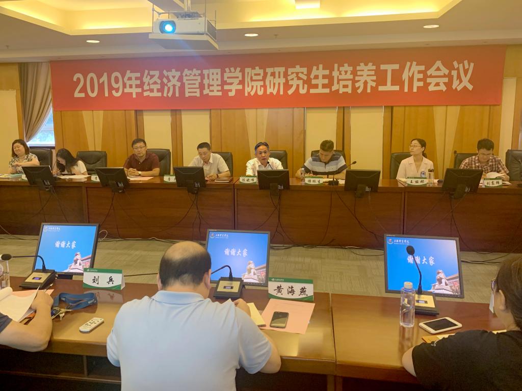 本网讯 为深入学习贯彻习近平总书记在全国教育大会上的讲话精神,贯彻落实教育部办公厅2019年发布的《关于进一步规范和加强研究生培养管理的通知》,7月12日上午,经济管理学院在图文信息楼第一会议室召开研究生培养工作会议。校党委副书记、副院长陈晓峰,研究生处处长唐炎,学院党政班子成员出席会议,全院硕、博士研究生导师以及研究生辅导员、教学秘书参加会议。会议由经管学院党总支书记游林生主持。