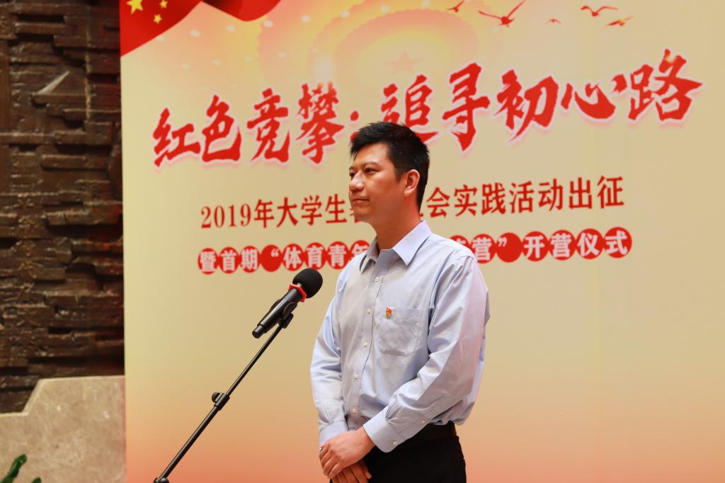 党委书记李崟为2019年上海体育学院大学生暑期社会实践活动授总旗并宣布出征。今年我校以“竞攀新时代,上体追梦人”为主题,各学院充分发挥学科特色和人才优势,充分培育已有的品牌项目和团队,组建了112支队伍,其中社会服务类73支,社会调研类39支,近千名学生奔赴祖国各地开展活动,深入基层,充分调研,服务社会,将体育文化、体育知识运用到社会实际中去。