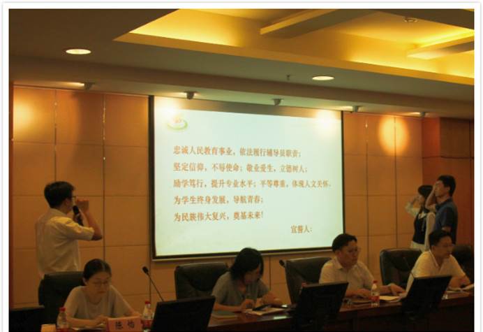 在本次务虚会上还举行了2019年新进辅导员入职宣誓仪式。2019年新入职的三位辅导员在学工部、研工部、武装部副部长程华的带领下进行了入职宣誓。
