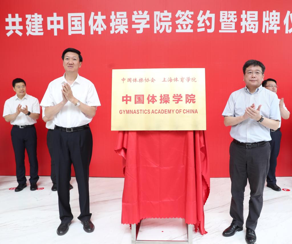 本网讯 8月22日,中国体操学院共建签约暨揭牌仪式在上海体育学院举行。国家体育总局副局长高志丹、上海市副市长陈群为中国体操学院揭牌,并为学院理事会理事长、执行理事长和副理事长颁发聘书。国际体操联合会主席渡边守成发来贺词。国家体育总局、中国体操协会、上海市教育委员会、上海市体育局相关负责人,中国体操学院理事会理事,及体操运动世界冠军等出席签约暨揭牌仪式。