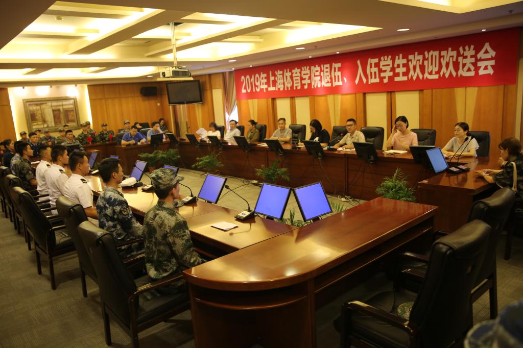 本网讯 2019年,我校学生响应国家号召,积极报名应征入伍,经过体检,政审等环节考察,有35名学生符合条件,经区武装部批准入伍。此外,我校2019年共有37名士兵退伍,其中23名同学将重返校园,继续学业。9月16日下午,学校举行了2019年上海体育学院退伍、入伍学生欢迎欢送会。