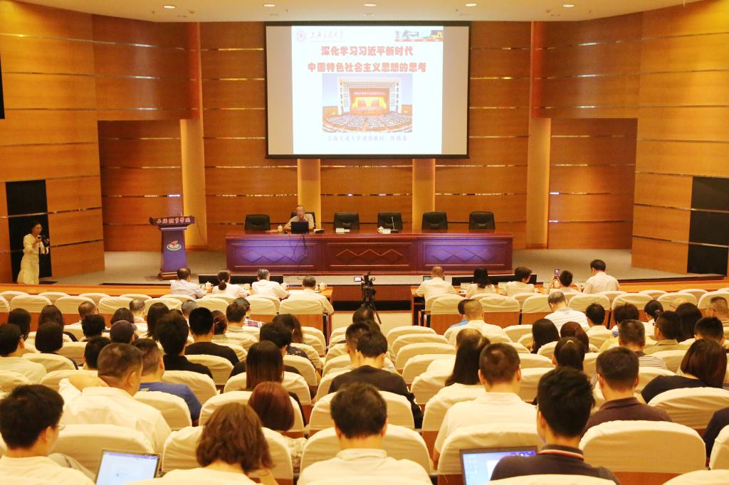 本网讯 9月20日上午,学校以“理想信念、党的政治建设”为学习专题,在图文信息楼报告厅开展了“不忘初心、牢记使命”主题教育集中学习。上海交通大学教授陈锡喜应邀作题为“深化学习习近平新时代中国特色社会主义思想的思考”的辅导报告。校领导、全体中层干部、党支部书记参加了集中学习。