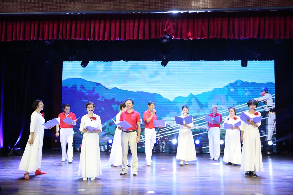 文艺演出精彩纷呈,退管会舞蹈《春播》拉开了的序幕,穿着染色的布衣,在春天的农田里播种的欢快景象;学生社团的民乐合奏,给我们带来的是一款浓浓的江南风情;老教协的诗音话《灿烂的阳光下》,展现了老教师的风采和韵味;舞蹈协会的《天边的巴格拉宗》在背景音乐烘托下彰显了舞蹈的美。学生参与演出的舞蹈、武术给我们再来的视觉冲击,赢得了阵阵掌声。鼓舞《盛世中华》首次成功演出,揭开了参加上海市教育系统展演序幕。老教授合唱团表演的大合唱《我和我的祖国》优美的旋律达到了高潮,台上台下掌声互动,“我和我的祖国,一刻也不能分割,无论我走到哪里,都流出一首赞歌”,舞动的红旗、绚丽的背景、嘹亮的歌声,谱出一曲歌颂祖国的壮丽篇章;“不忘初心,继续前进”,“最美中国道路”,激昂的唱词、饱满的热情、灿烂的笑容,构成一幅神采飞扬的动人画卷。