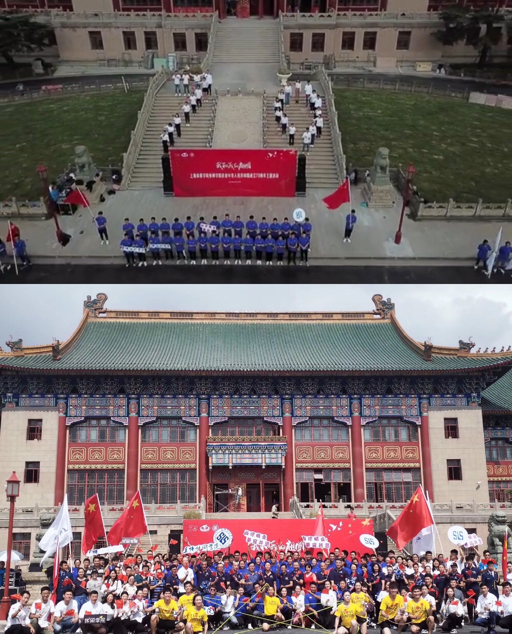 此次快闪虽然只有短短15分钟,但是却振奋着每一位绿瓦学子的心,佩戴党徽的党员学生站成“70”数字的队形,想用这种新颖的方式共庆新中国七十华诞,我们青年党员心中有信念,为着祖国的发展而努力奋斗。快闪的最后,在场的所有师生大声呼喊出心中祝福:祝伟大的祖国,生日快乐,繁荣昌盛!