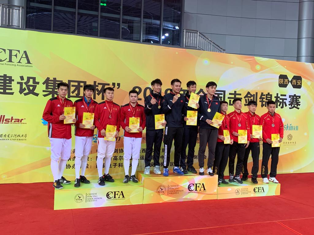 本网讯 10月30日从2019年全国击剑锦标赛赛场传来喜讯,上海队获得男子重剑团体亚军,我校学生王子杰、孙东东作为主力队员全程助力上海队夺得银牌。